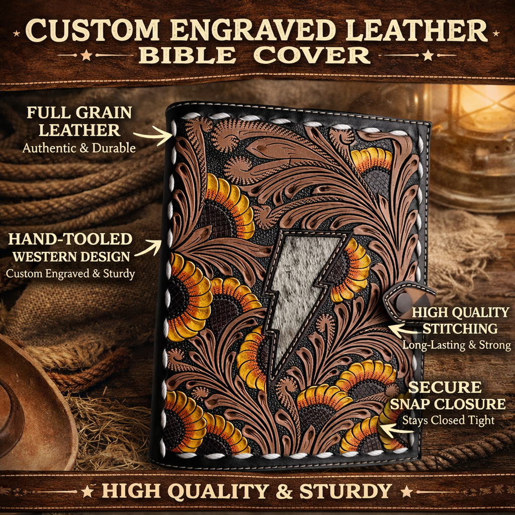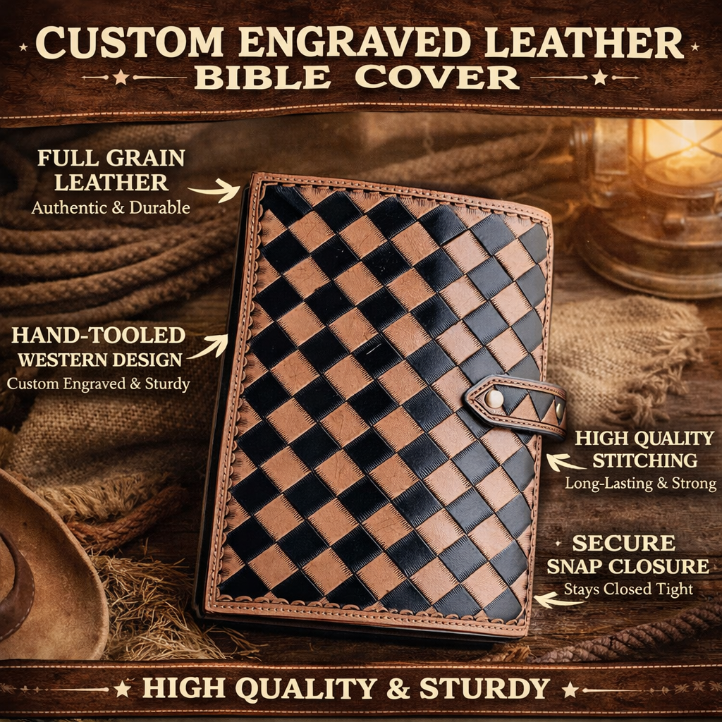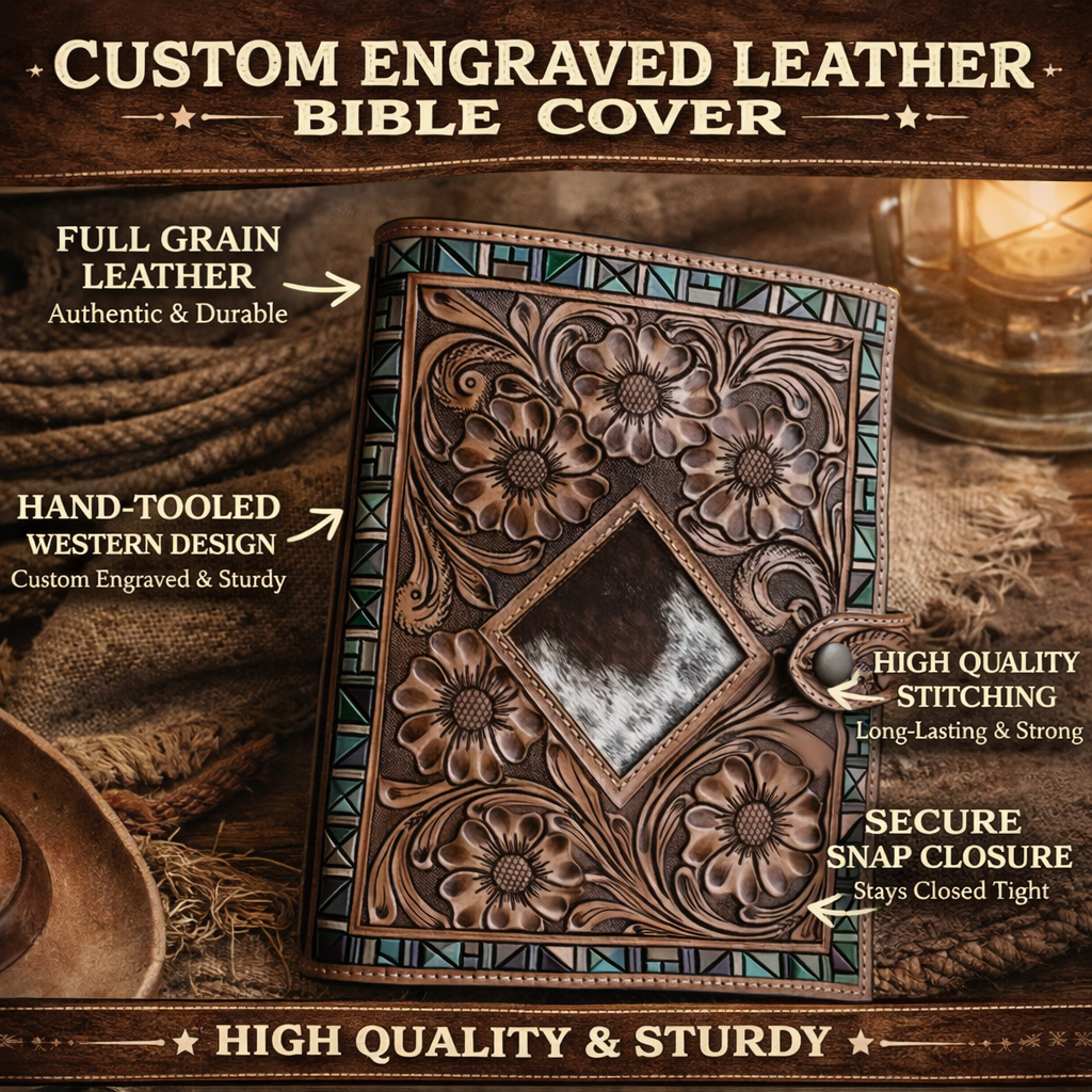 Every cover is hand-tooled with precision and crafted from durable full-grain leather, giving you a timeless western look that only gets better with age. Strong, reliable, and made to carry your faith wherever life takes you.
